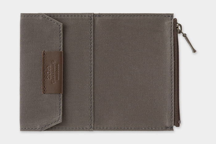 파라핀 코팅 가공한 얇은 면 소재로 도쿄 근교 장인들이 손수 제작한 이 코튼 지퍼케이스는 왼쪽에 카드 수납 포켓이, 오른쪽에 동전이나 열쇠를 넣을 수 있는 지퍼 포켓이 있습니다.