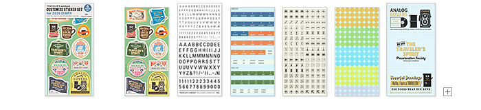 심플한 트래블러스노트 다이어리에 재미를 더하도록 표지를 꾸밀 수 있는 커스터마이즈 스티커와 전사씰, 인덱스 스티커, 예정을 표시하는 스케줄 스티커와 투명 원형 스티커, 포켓 스티커가 들어 있습니다.