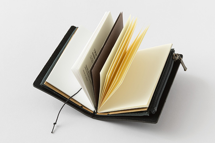 이 세트에는 트래블러스노트 카드 사이즈와 예비 리필 노트 외에 코튼 지퍼 케이스, 크래프트파일, 연결 밴드가 포함되어 있습니다.